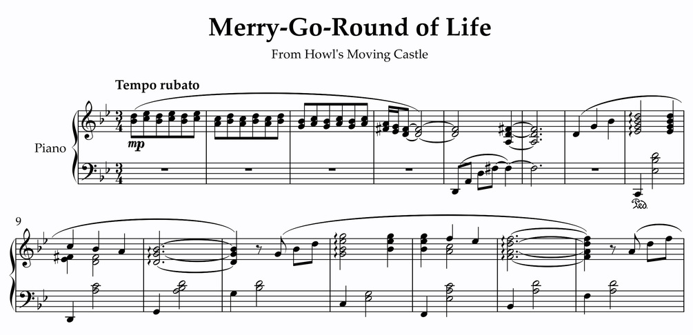 Merry-Go-Round of Life from Howl's Moving Castle, arrangement for Piano trio (piano, violin, cello).